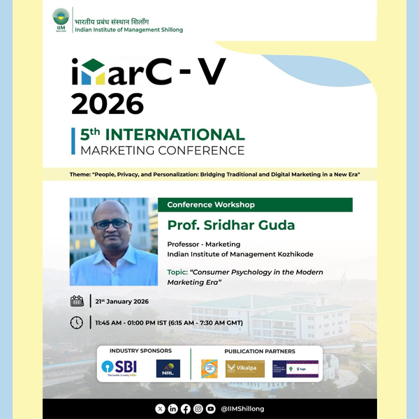 International Marketing Conference (iMarC) is an annual International referred marketing conference of IIM Shillong started in 2021. The 5th International Conference in Marketing will be held to provide a platform to all marketing researchers and professionals from academia and industry to come together to discuss and deliberate on bridging the gap between Marketing Theory and Practice.
