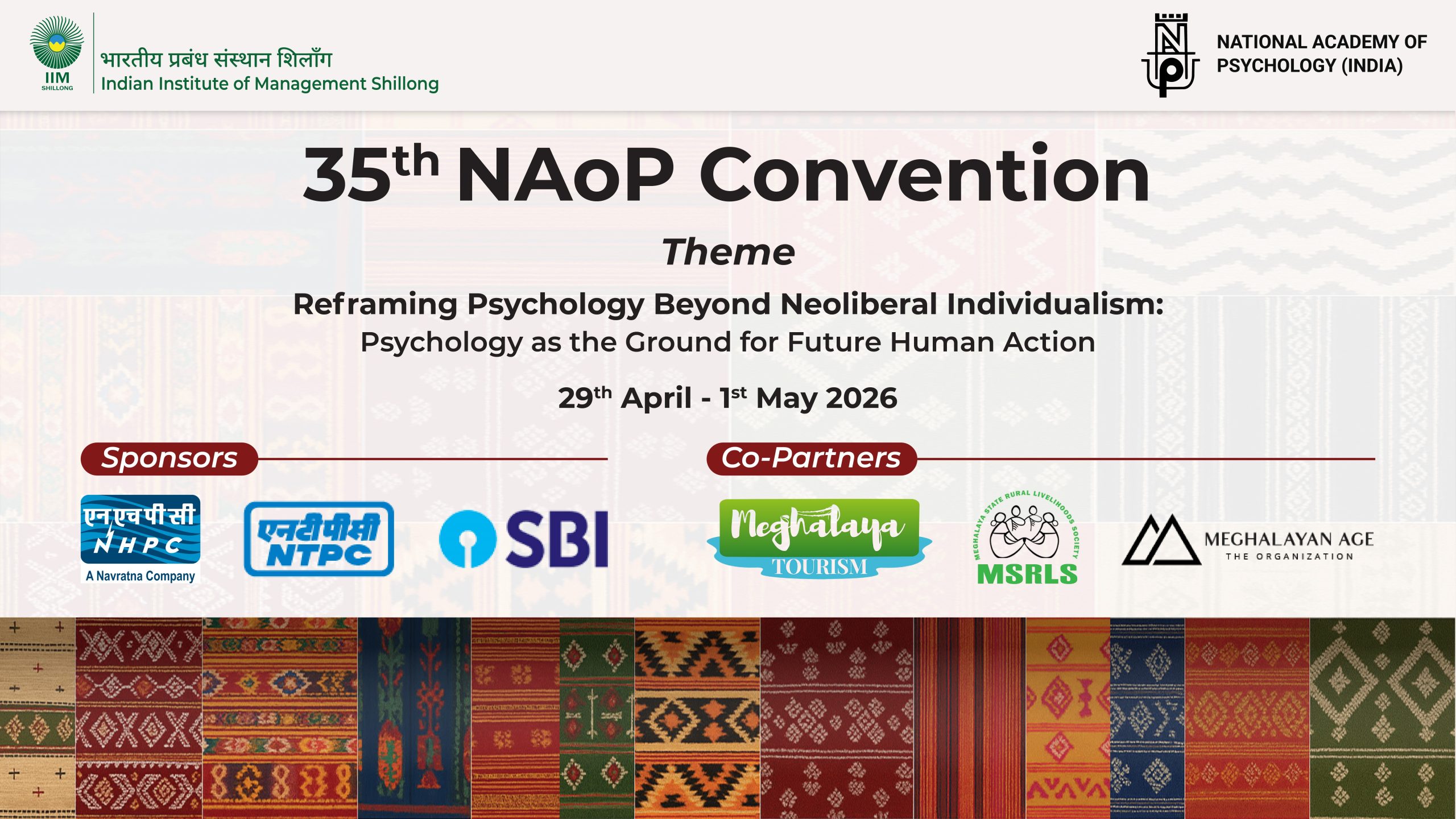 The proposed conference aims to serve as a platform for Reimagining Psychology in a way that honours both universals and particulars – where Western insights meet indigenous wisdom, and where the values of care, compassion, and community are reaffirmed as central to human survival and flourishing. Relevance of reimagining psychology goes beyond academia. It lays the very ground upon which future societies, communities, organizations, and nations can be built.